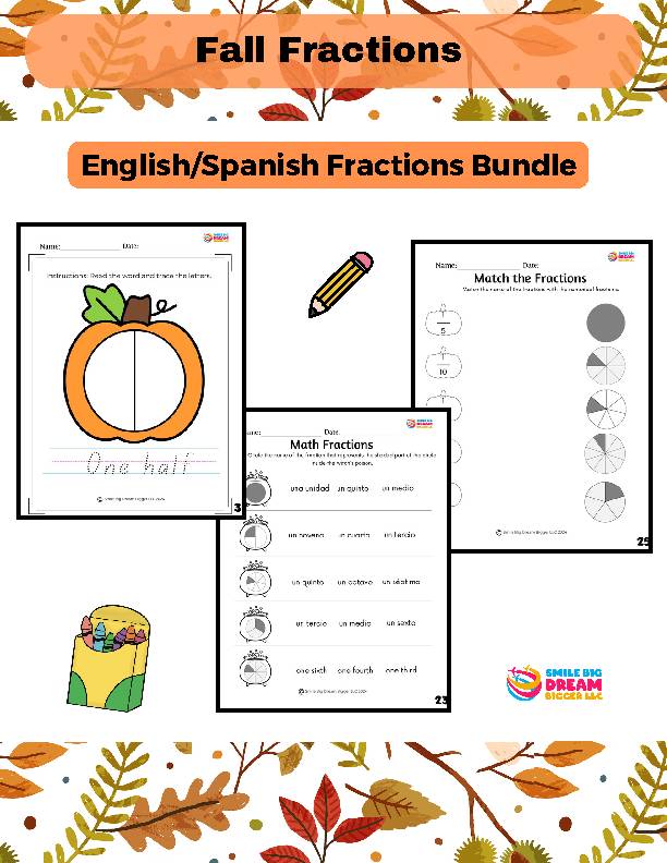 Hello Smile Big, Dream Bigger friends and amigos! Introduce your students to fractions with a fun, bilingual twist! Our Fall-Themed Fraction Worksheet Bundle is perfect for young learners to practice fractions in both English and Spanish while enjoying the cozy... more