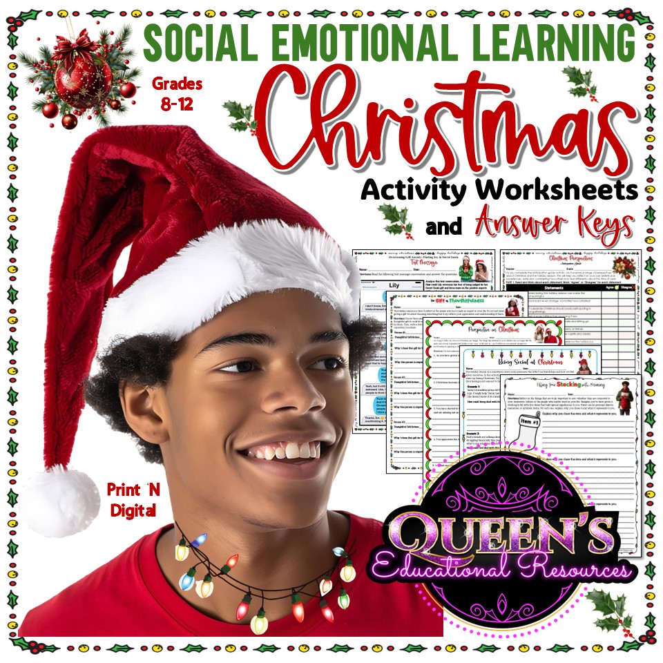 Engage your middle and high school students in thoughtful reflection this holiday season with these social-emotional learning (SEL) activity worksheets. Each activity encourages students to explore the emotions, challenges, and joys that come with Christmas, helping them develop empathy, self-awareness, and communication skills. From managing holiday stress and navigating social conflicts to reflecting on traditions and personal values, these activities are designed to foster meaningful discussions and personal growth. Perfect for classroom use or group settings, these worksheets provide a fun yet insightful way for students to connect with the holiday season on a deeper level.